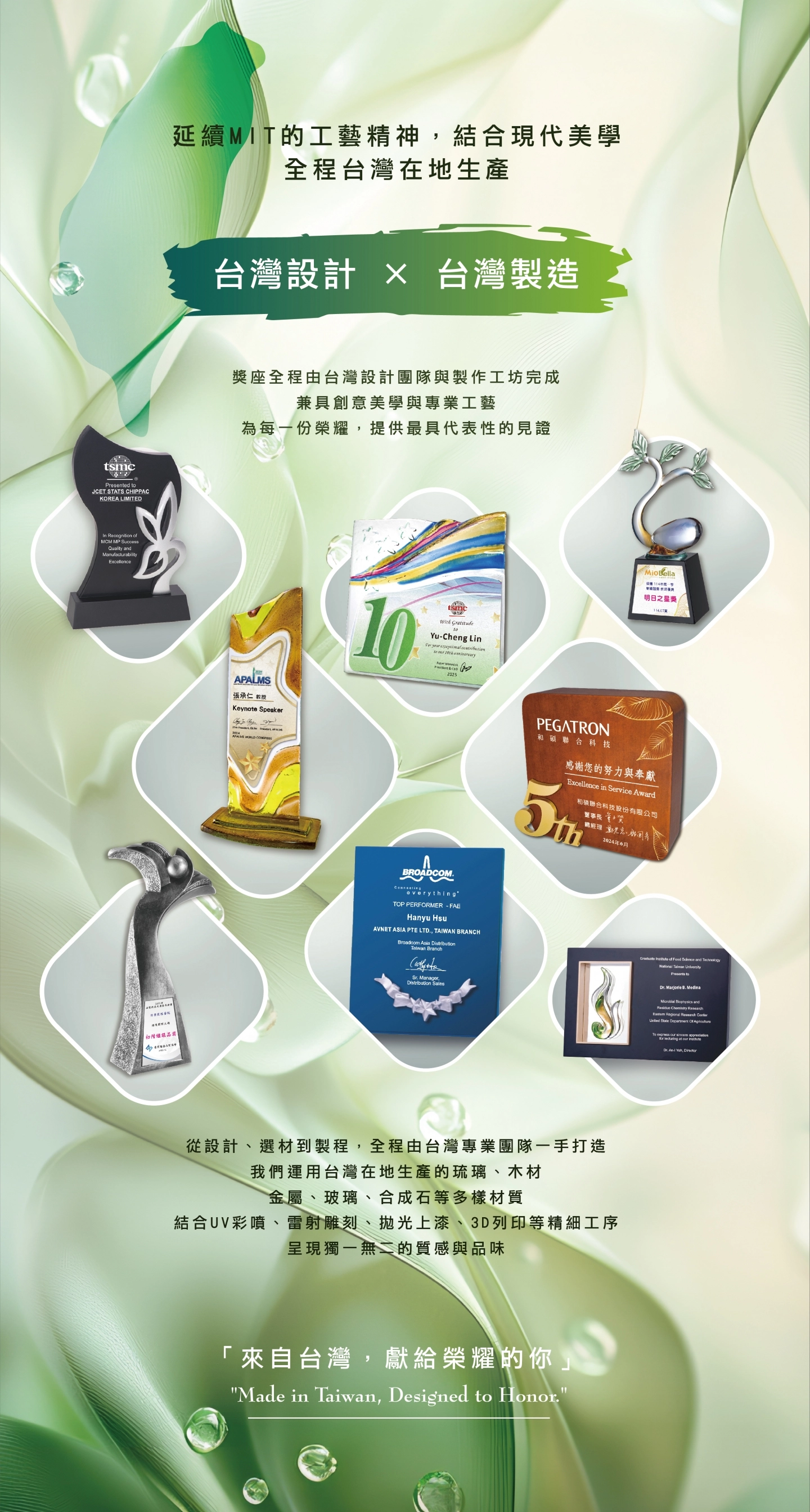 獎座全程由台灣設計團隊與製作工坊完成,兼具創意美學與專業工藝,